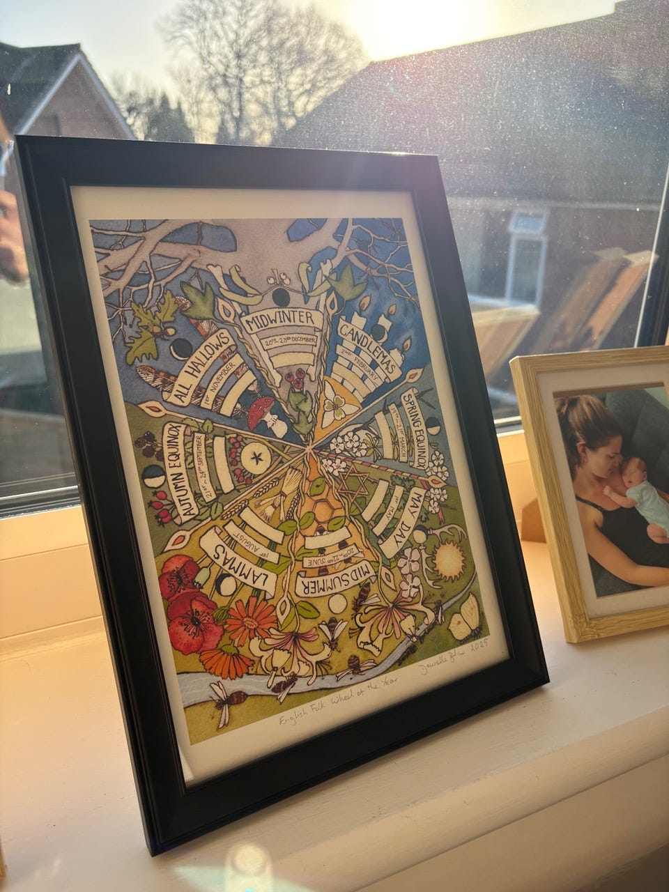 On my desk at home I have this print of the English folk wheel, which I learned about from Chloe George’s Substack. I love the idea that every six weeks the wheel of time is turning, no matter how frustrating and stagnant life can feel sometimes. I often need the reminder, especially in late winter.