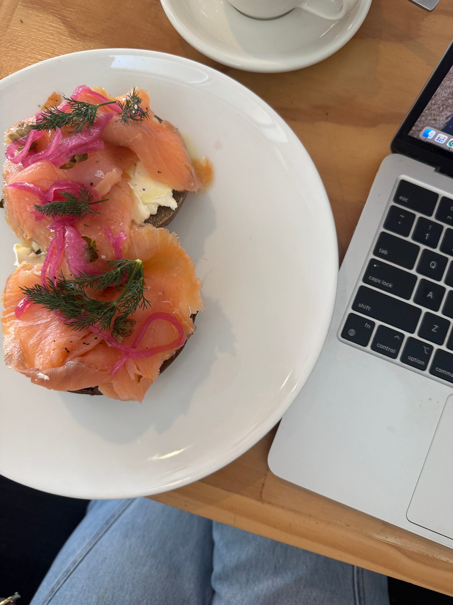 An hour or so of admin work after pilates from the cafe next door — this is where I currently write to you from.